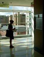 Karen Fishel reviewed samples last week for two very different projects in our office. Shown above at left, Karen is selecting colors for a 16’ x 8’ art installation based on the Periodic Table of Elements & Chemistry for OSU’s new Linus Pauling Science Center.